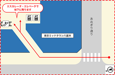 東京駅八重洲南口を出て正面に見える高層ビル(「東京ミッドタウン八重洲」)の地下にあります。